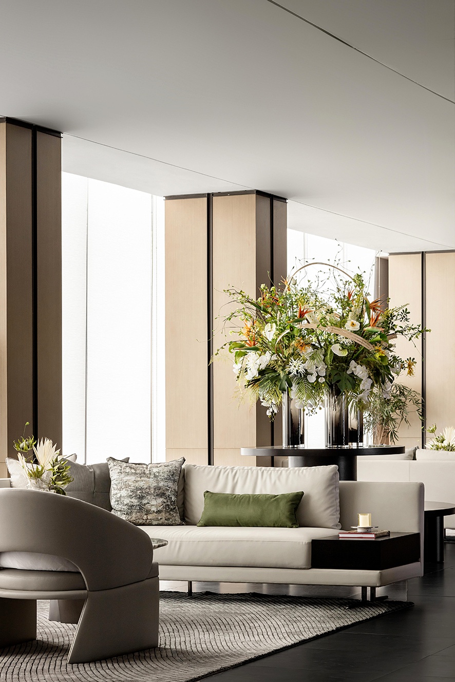 設計理念:空間調性的靈感源于自然,使用安靜柔和的自然色,使人在總體在敏銳的感知中,體會情緒的細微變化。結合在地文化中“新”與“舊”的碰撞延續,將情景設定在舒適的閾值內游走。