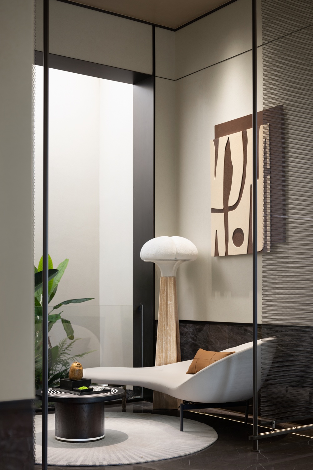 設計理念:本案將自然、藝術、科技相結合,以現代簡約的設計手法與當代美學相糅合,運用色彩與肌理提煉現代時尚的表現形式,塑造時尚尊貴的空間氛圍。