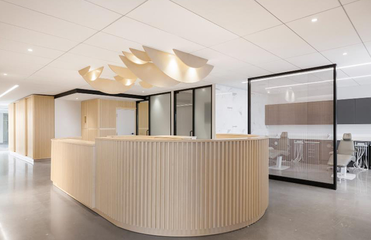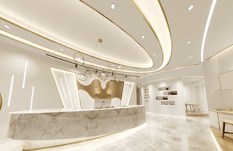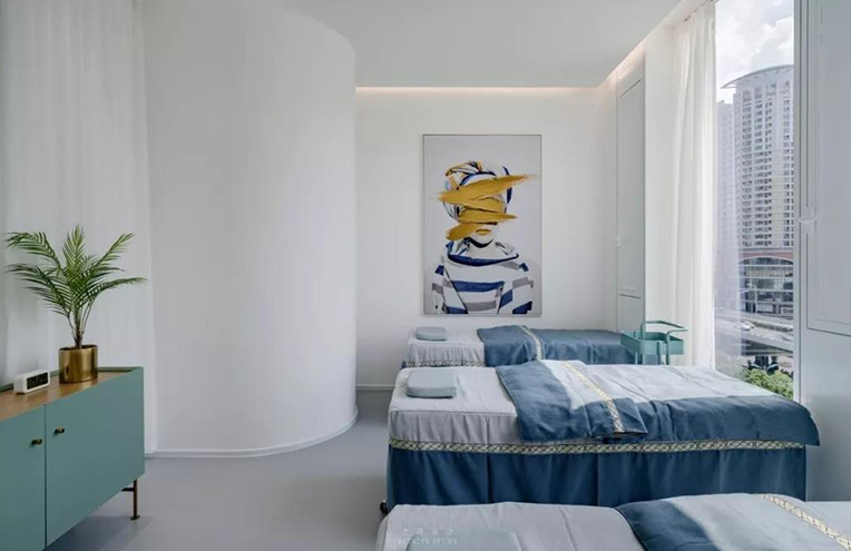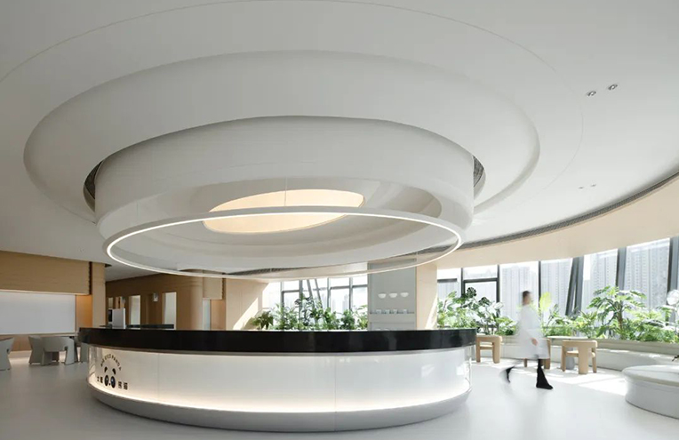 項目介紹:采用米白、淺灰、木色等低飽和暖色調,搭配柔和間接照明,避免強光直射。通過弧形元素、通透玻璃與自然綠植打造高級感,同時傳遞專業溫度。優秀的設計需將環境轉化為“良藥”的一部分,通過細節建立患者信任,并直接提升商業價值。