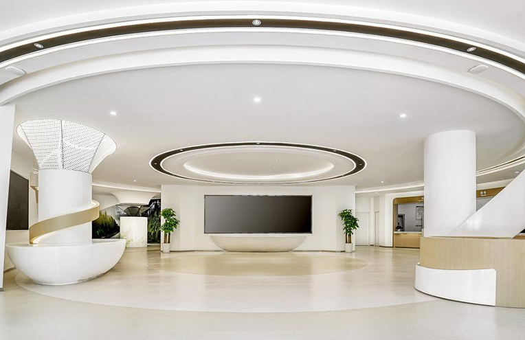 項目介紹:大廳中間的立柱被我們變成了整個空間的藝術裝置,同時也提供了空間的照明需求。結合圓柱形成了一個環形的動線空間。